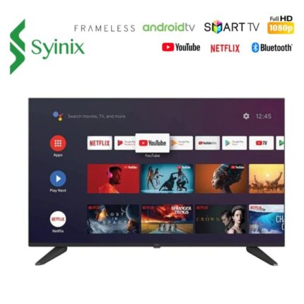 4K UHD Resolution A+ Panel SR AI Super Resolution 24W Speakers Voice remote control Dolby Audio Google Duo YouTube, Netflix, Prime Video Ok Google Chromecast Built-in HDR PQ Technology Certified Android 11 OS Frameless Design Google Assistant Built-in Voltage Stabilizer Bluetooth 5.0Syinix 43 inch Smart Android TV Google TV Full HD Chromecast TV Frameless 2K HDR